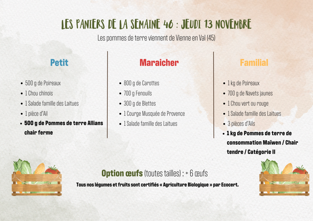 Semaine 46 – Auteur/autrice de la publication :Fanny TALBOT Publication publiée :13 novembre 2025 Post category:Actualités / Contenu des paniers Commentaires de la publication :0 commentaire Cliquez sur les images pour les agrandir La recette de la semaine Le contenu des paniers de la semaine Vous devriez également aimer Semaine 03 – 14 janvier 2025 Semaine 45 – 5 novembre 2025 Semaine 13 – 2023 29 mars 2023 Laisser un commentaire Annuler la réponseCommentEnter your name or username to comment Enter your email address to comment Saisir l’URL de votre site (facultatif) Δ